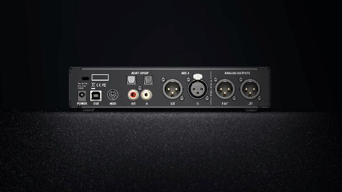 持ち運びできるコンパクトな筐体には、AES/EBU、SPDIF、ADATのデジタル入出力、さらにマイク / ライン・アナログ入力端子 × 2系統、アナログ出力端子 × 4 系統(XLR端子 ×2 、TRSフォン端子)、デジタル入力に割り当て可能な2chサンプル・レート・コンバーター、完全なスタンドアローン動作機能、1000兆分の1秒精度のクロックを実現するSteadyClock FS回路、パラメトリックEQを搭載。