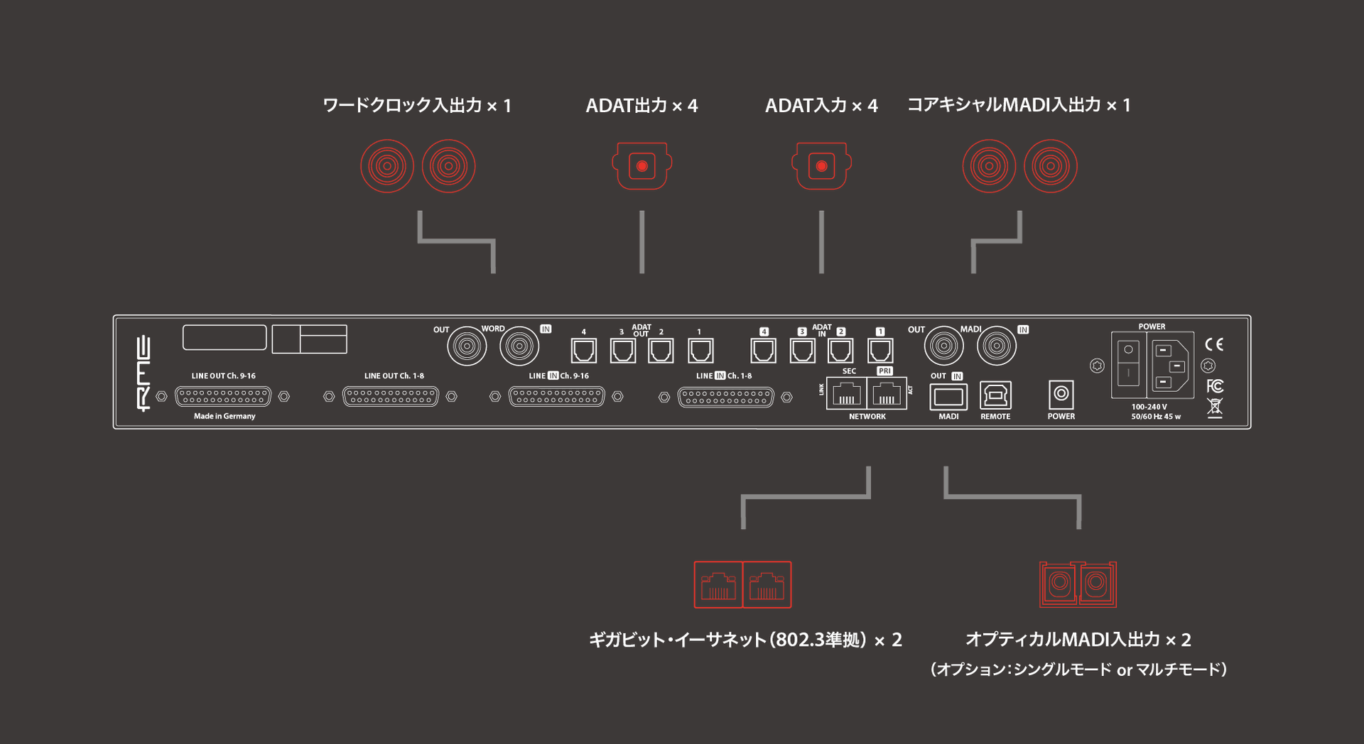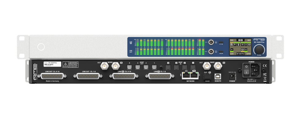 視認性に優れたLEDメーターとディスプレイで構成された新設計のフロント・パネル、チャンネル単位の+13 / +19 / +24 dBu入出力レベル切替、2系統の独立ヘッドフォン出力、最先端のコンバーター回路と柔軟な内部ルーティング、RME独自のジッター抑制技術「SteadyClock FS」、そしてリダンダント対応のMADI・ネットワーク・電源接続を搭載*。これらすべてを、わずか1Uラックサイズに集約し、次世代イマーシブ・スタジオ構築の新たな基準を打ち立てます。