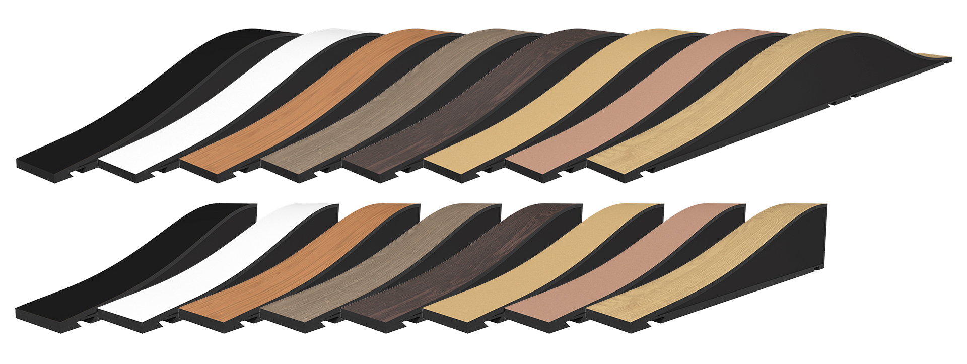 Vicousticが吸音用に開発した再生ペットボトルを主原料とするVicPET Woolは、特に中~高周波に対する高い音響性能を誇ります。美しいウェーブ・デザインのフレームは高品質のMDFと高圧メラミン化粧板で生産され、耐スクラッチ性と美しいデザイン性を両立しています。またVicFixシステムにも対応しており設置も簡単です。